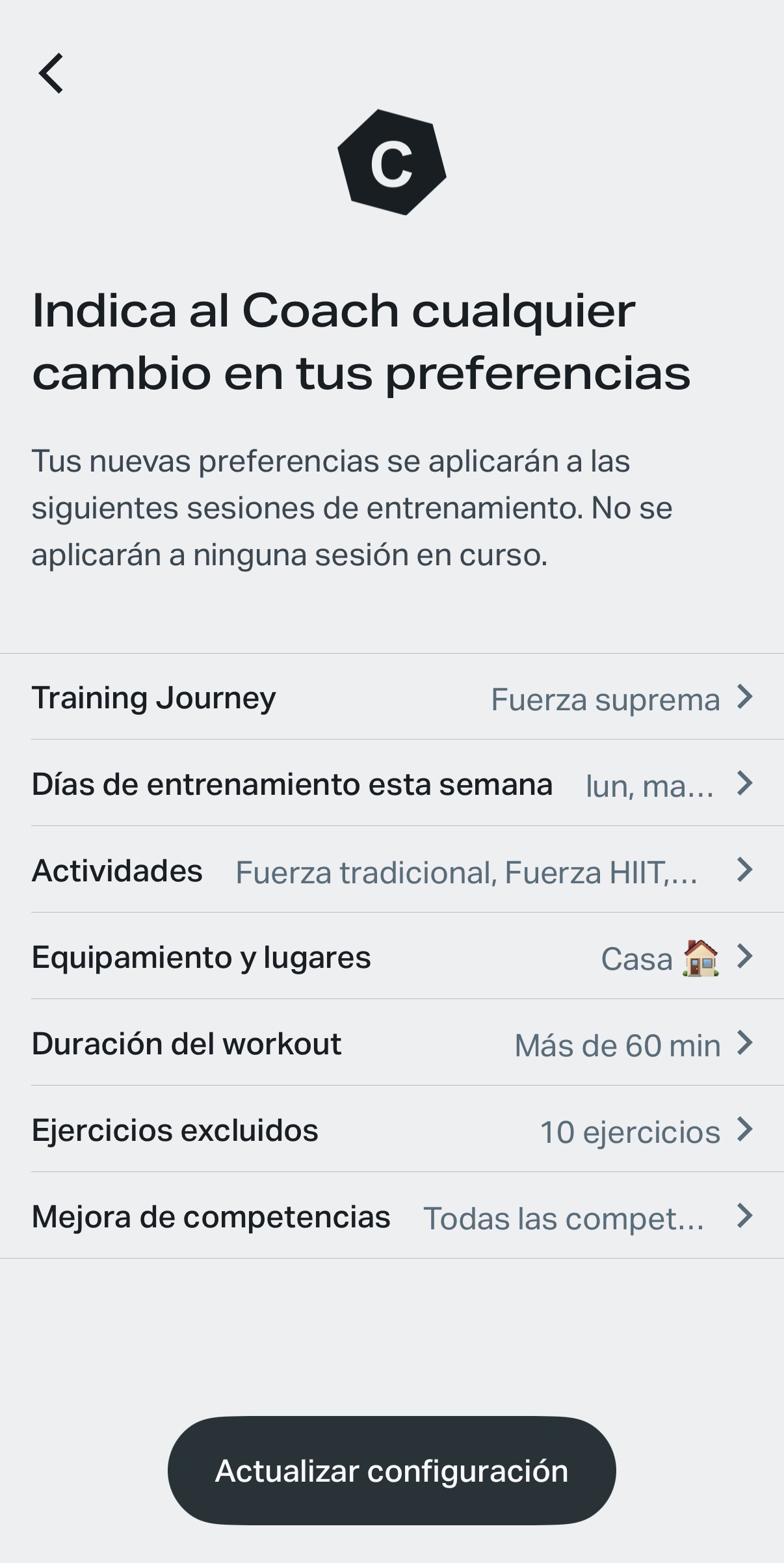 - Modifica sesiones si entrenas cansado, con poco tiempo o vienes cargado